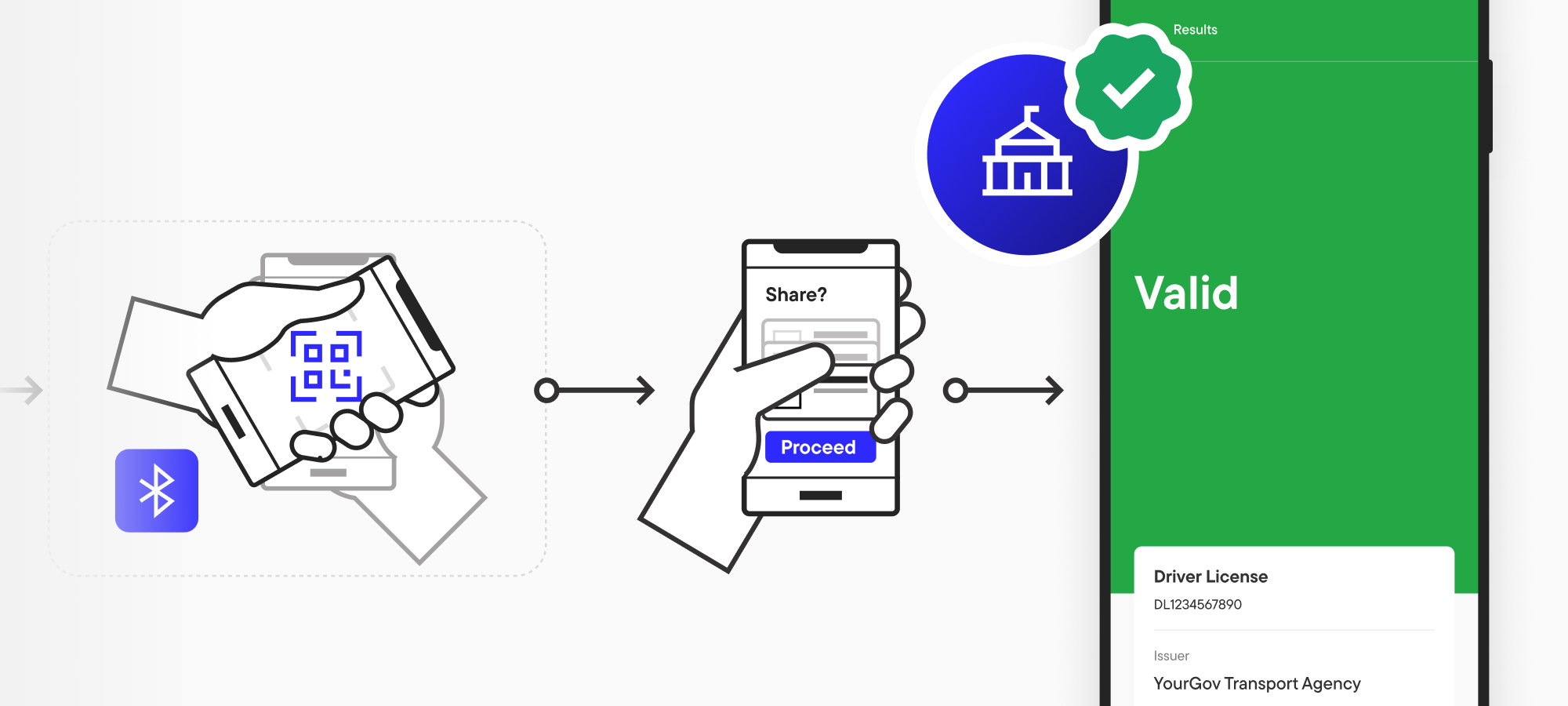 Proof of account ID samplePerson holding a phone showing a valid screenFabric layer of lines